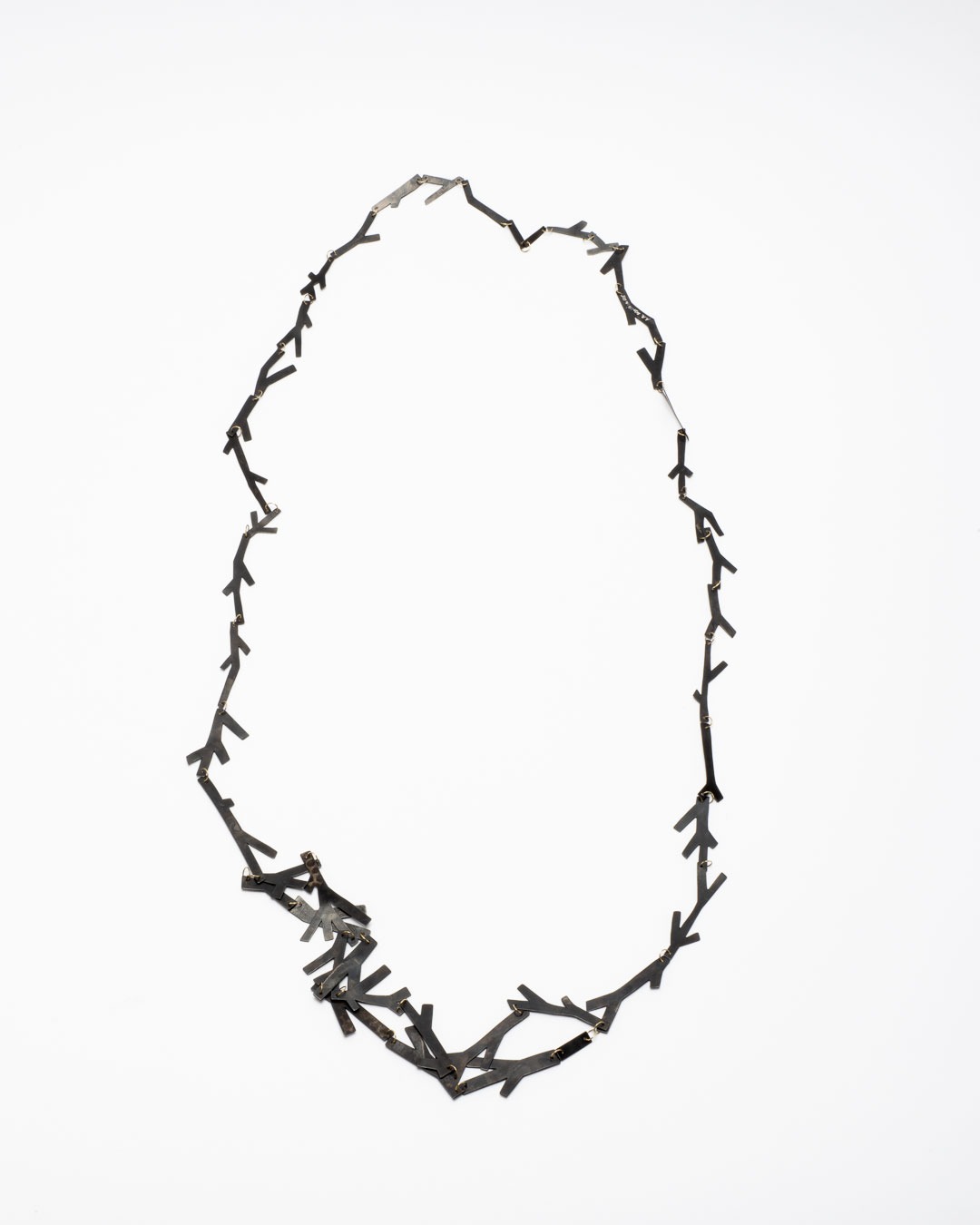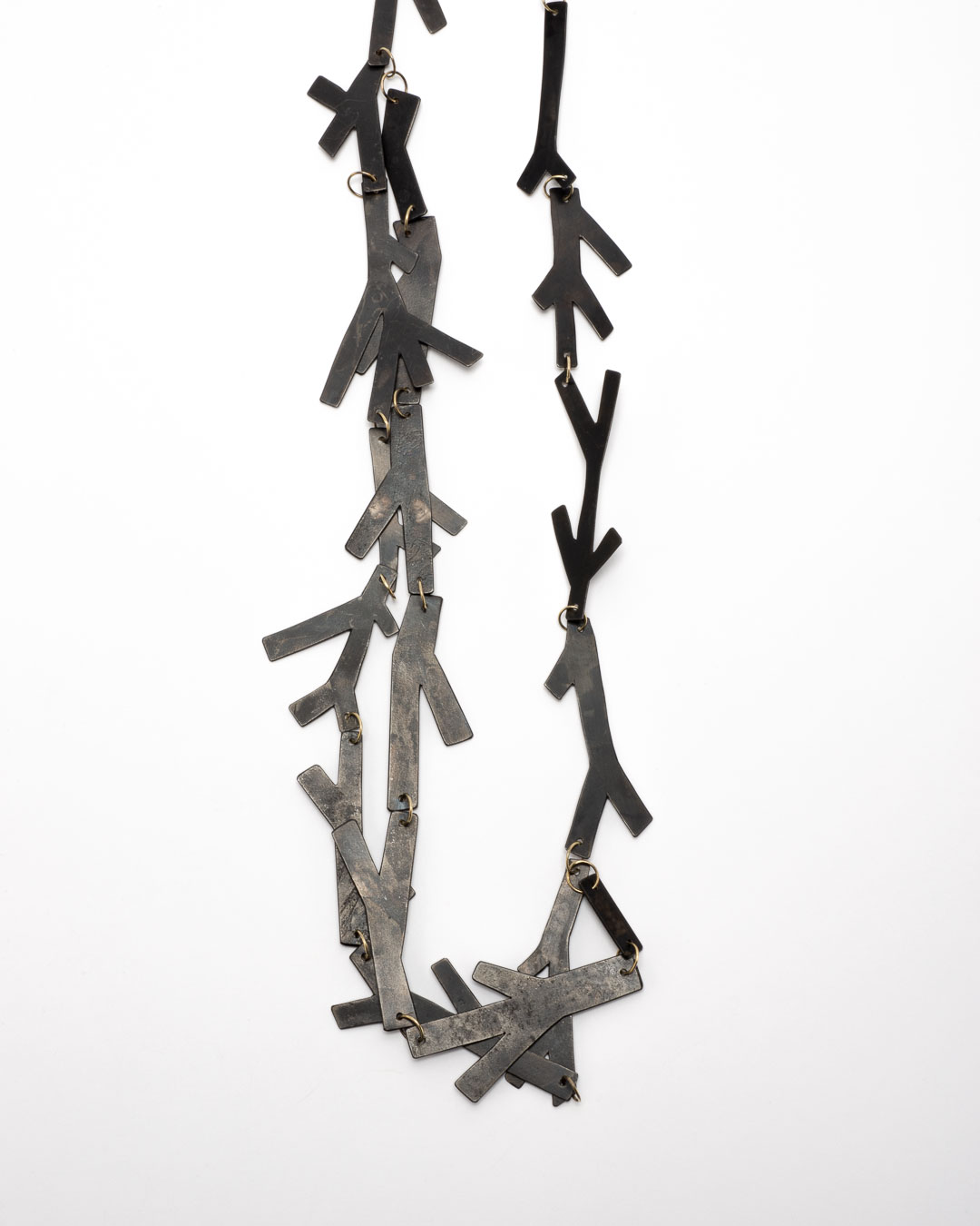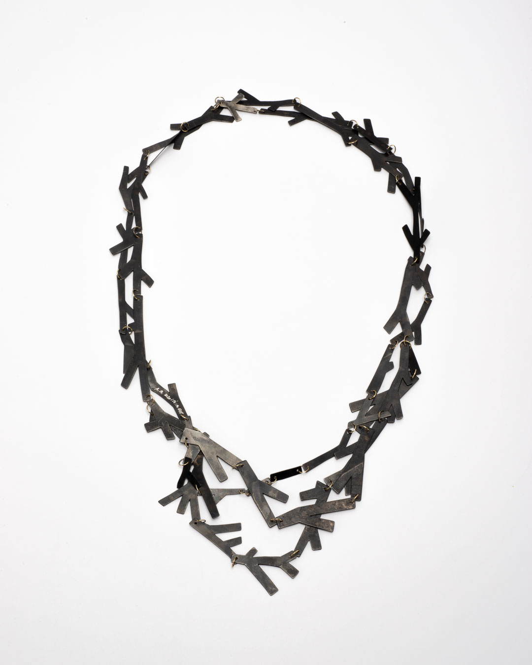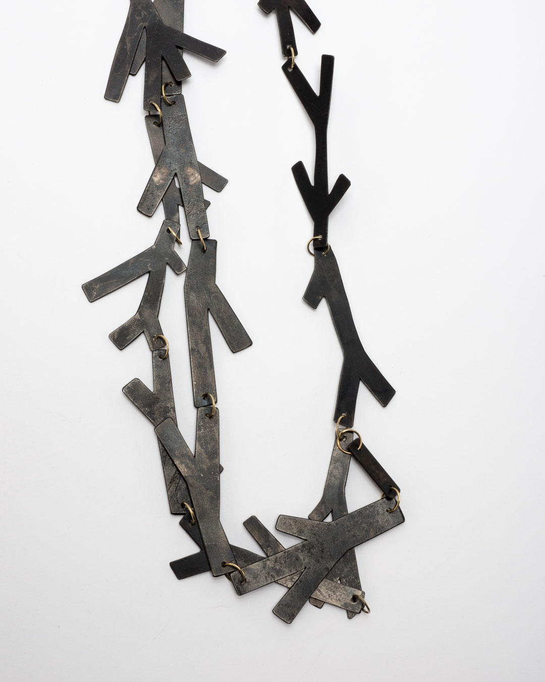 Antje Bräuer Zweige (Twigs), 2020 necklace; browned iron, 14ct gold 730 x 120 x 5mm