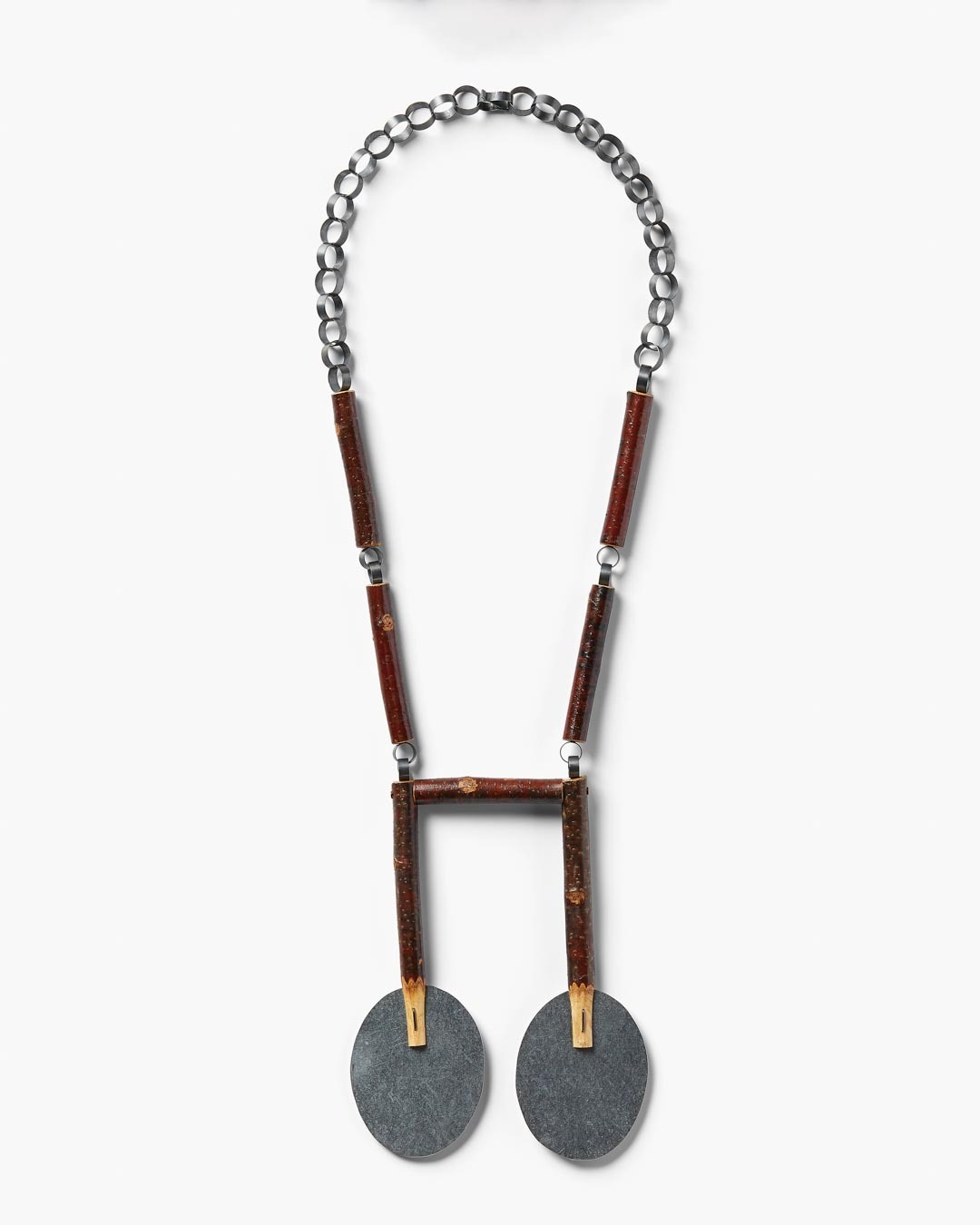 Dongchun Lee Tears, 2022 necklace; wood, zinc, galvanized steel, sterling silver 140 x 450 x 20 mm