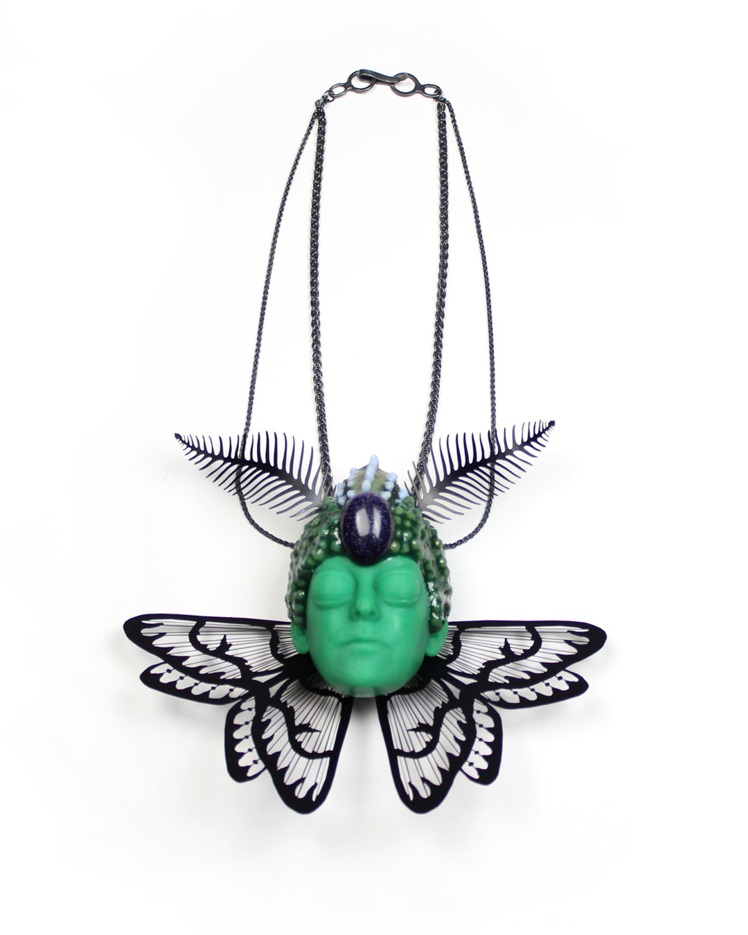 Märta MattssonLa Mariposa, 2024necklace; 3D printed resin, stainless steel, reconstructed stone, epoxy, pigments, silver300 x 170 x 60 mm